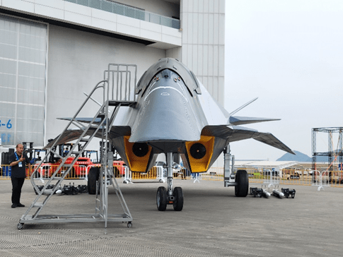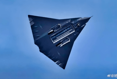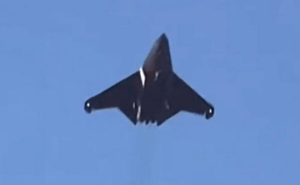 Det var et stort haleløst fly med tre motorer – formodentlig en flyvende vinge uden lodrette halefinner. Flyet blev fulgt at et Chengdu J-20, hvorfor det formodes, at det er et Chengdu fly – måske J-35?