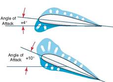 Jo større angrebsvinkel jo større opdrift, men hvis vingens vinkel til vandret bliver for stor, kan der opstå flow-separation – dvs. luften mister sit tag i vingen, så vingen mister opdrift – flyet staller og falder nedad.