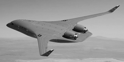 BWB en flykonstruktion, som forventes at kunne mindste energiforbruget betydeligt. I BWB erstattes det traditionelle cigar-vinge design af en fladtrykt krop, der mere eller mindre går ud i et med vingerne – men ikke en flyvende vinge som B2-bombeflyet uden en tydelig krop. Fidusen er, at den flade fuselage i modsætning til en cylinderformet medvirker til opdriften, og ikke bare er en dødvægt, der skal bæres oppe af vingerne.